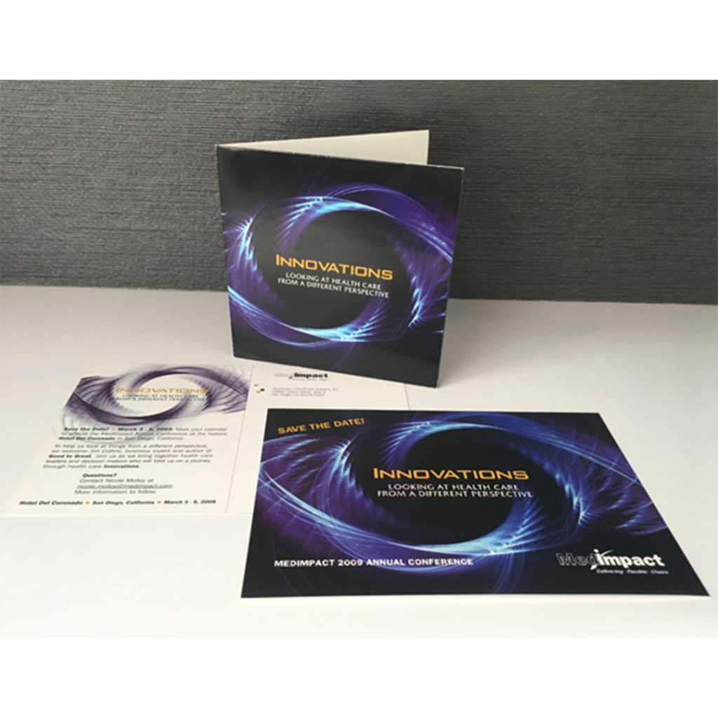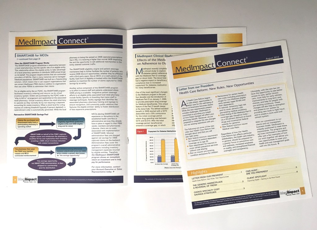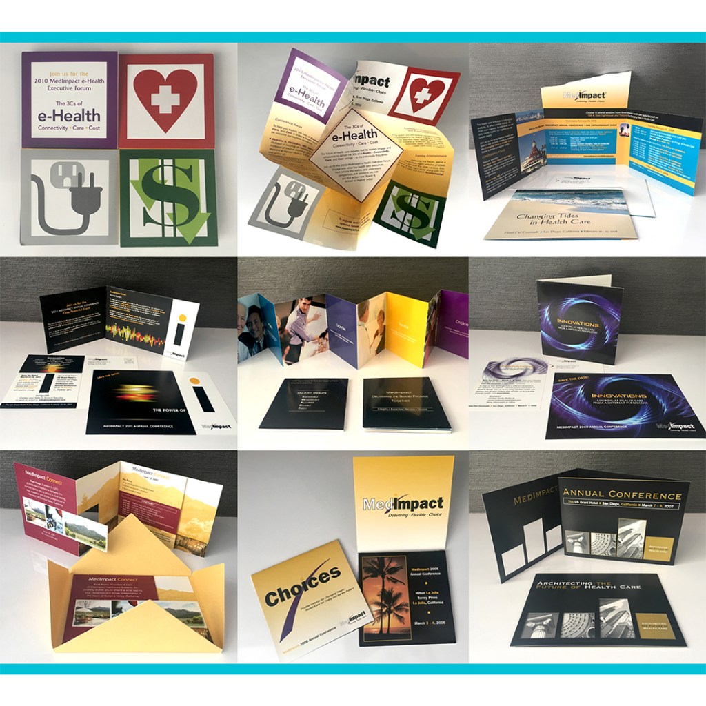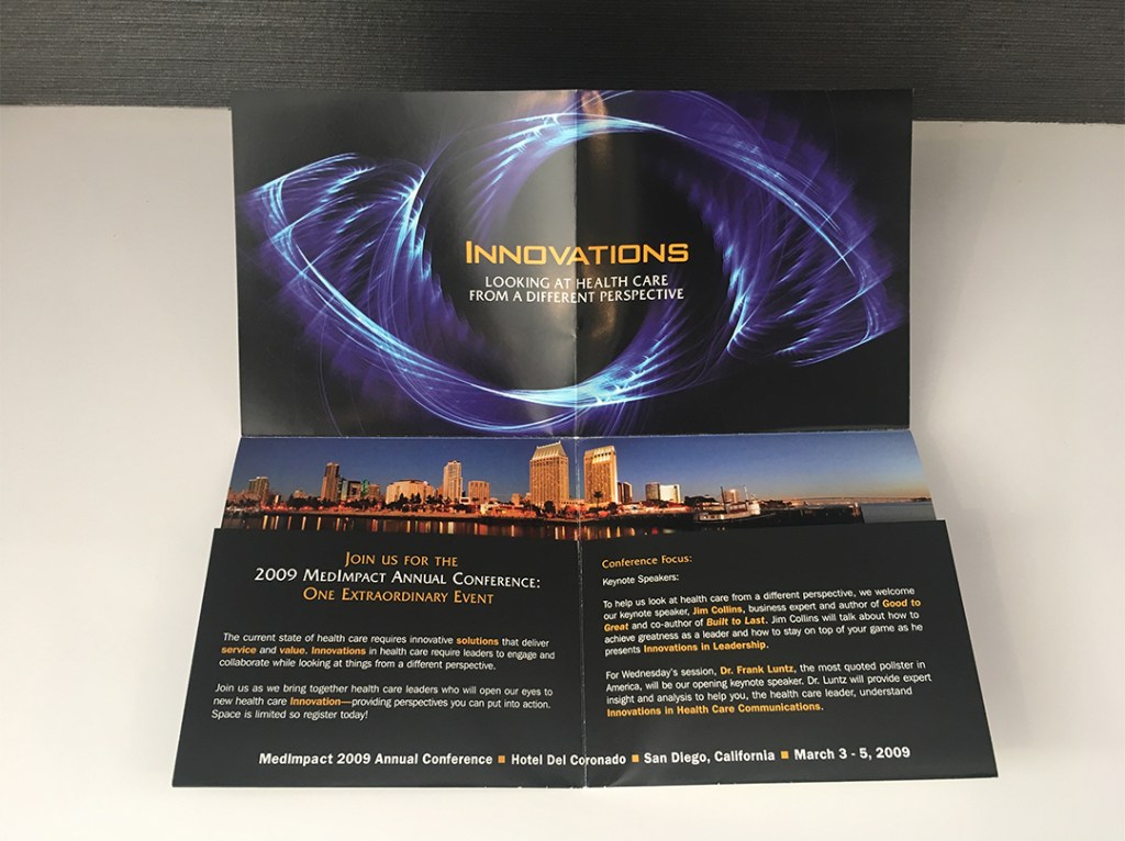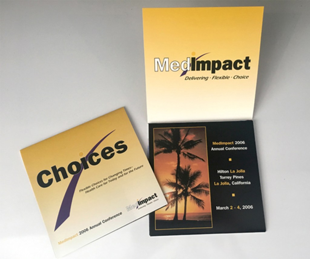- Accordion Fold Handout opens to the newly branded images and branded colors for MedImpact