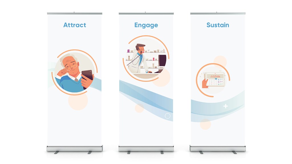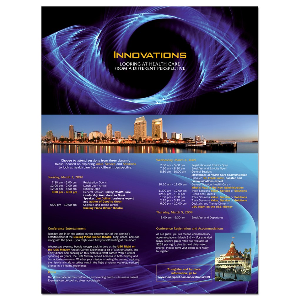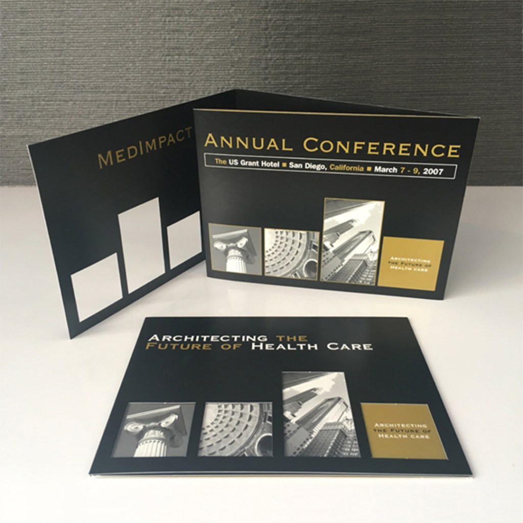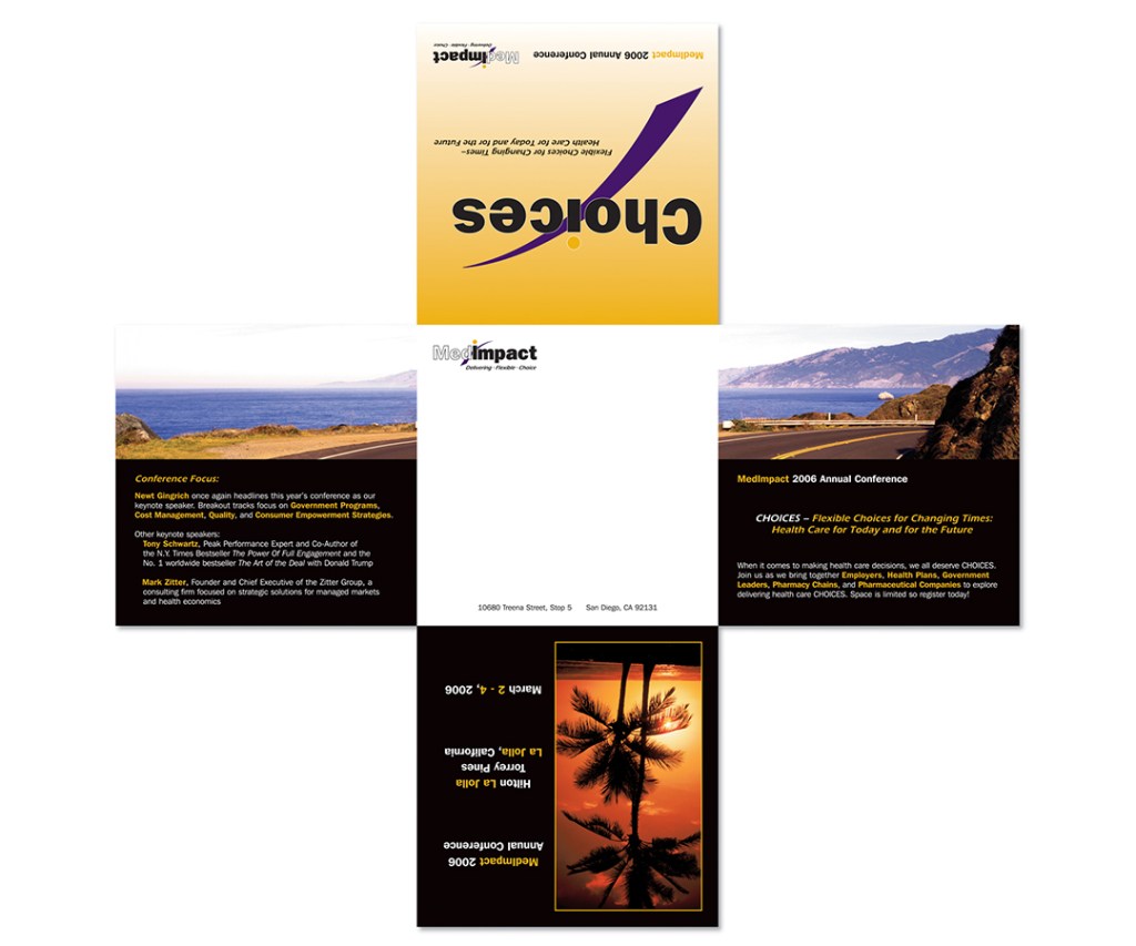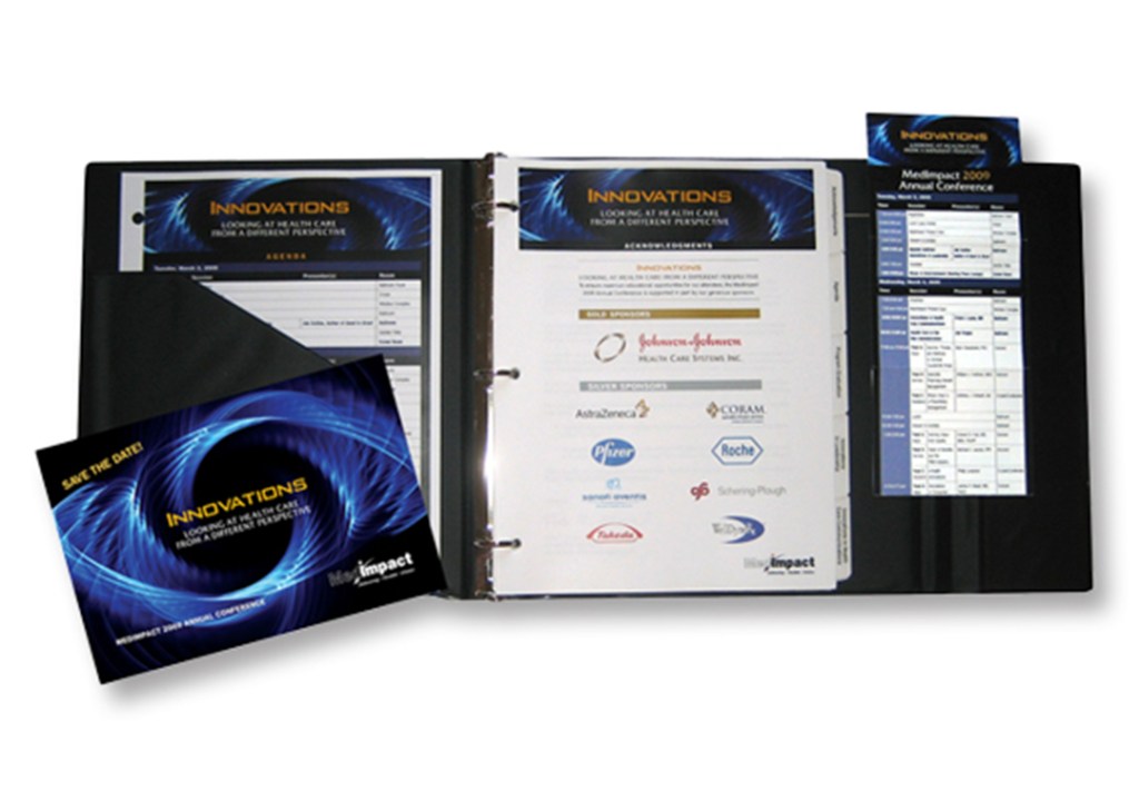 - Accordion Fold Handout opens to the newly branded images and branded colors for MedImpact