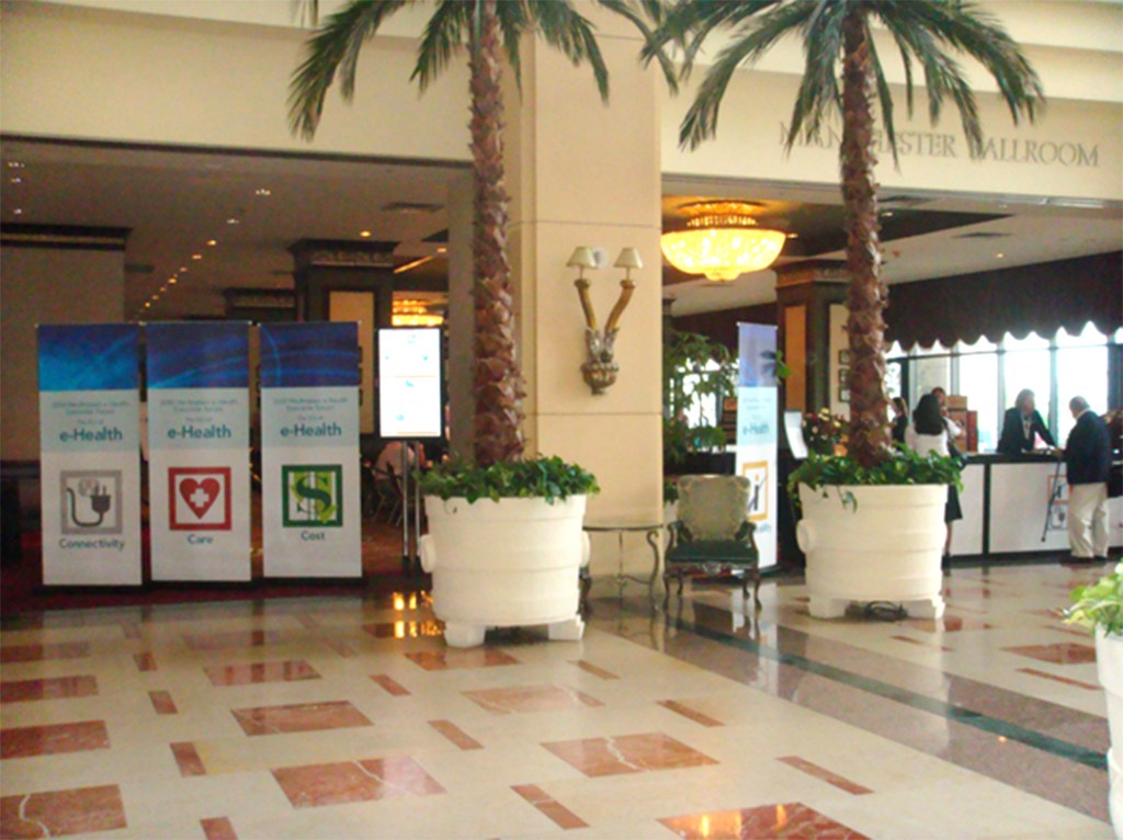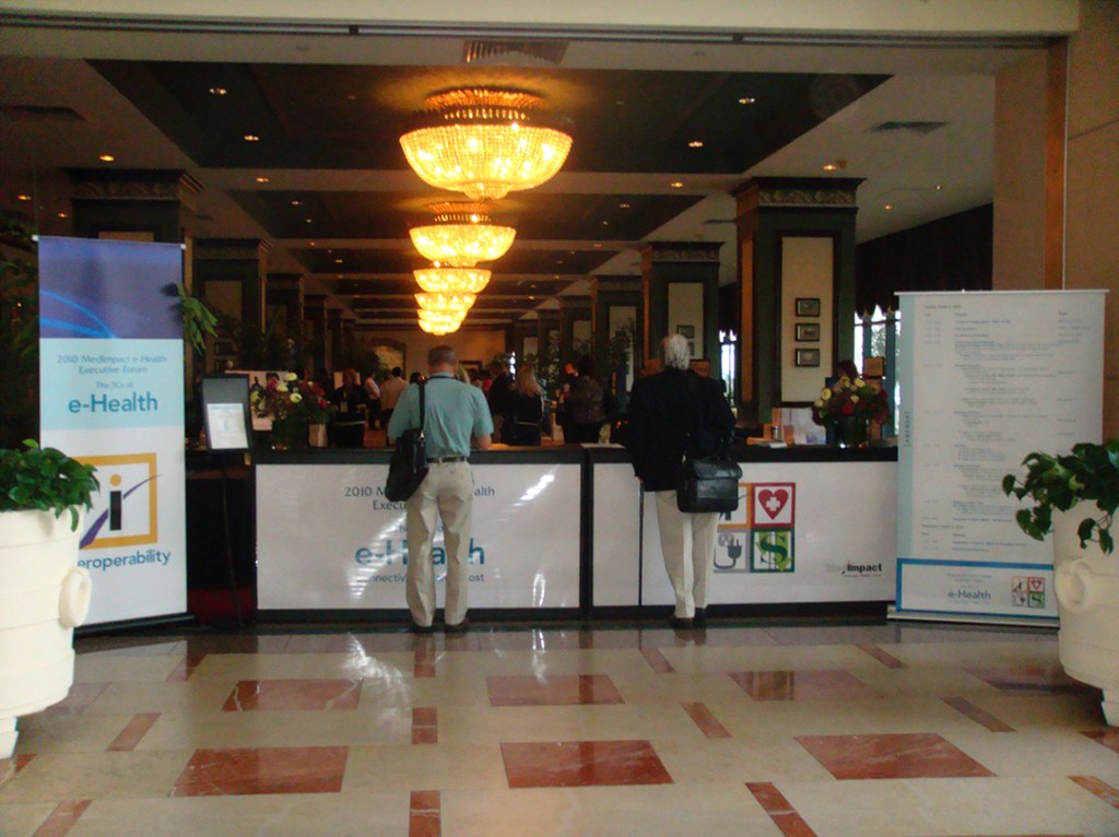 - Manchester Hyatt, Ballroom set-up as a reception area for the clients invited to the MedImpact Annual Conference – followed by the design of banner stands to carry-out the theme of the conference invitation.